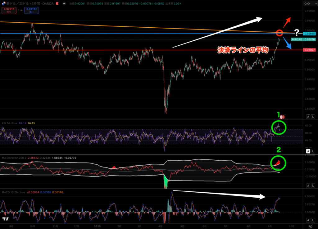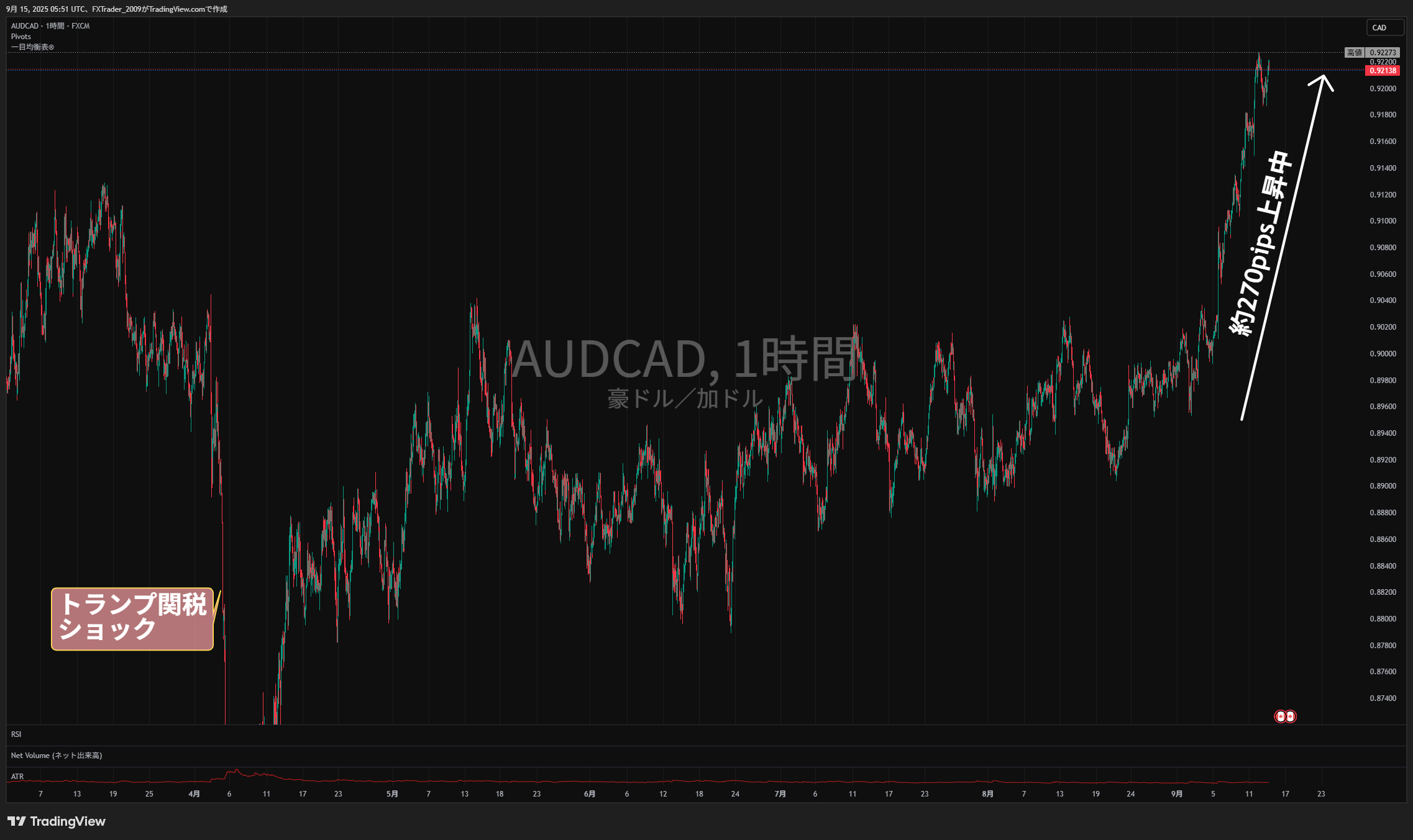 2025年9月2日より、『AUDCAD(オージーカナダ)』は押し目を作らない上昇(一方通行270pipsほど)について図解していきます。
