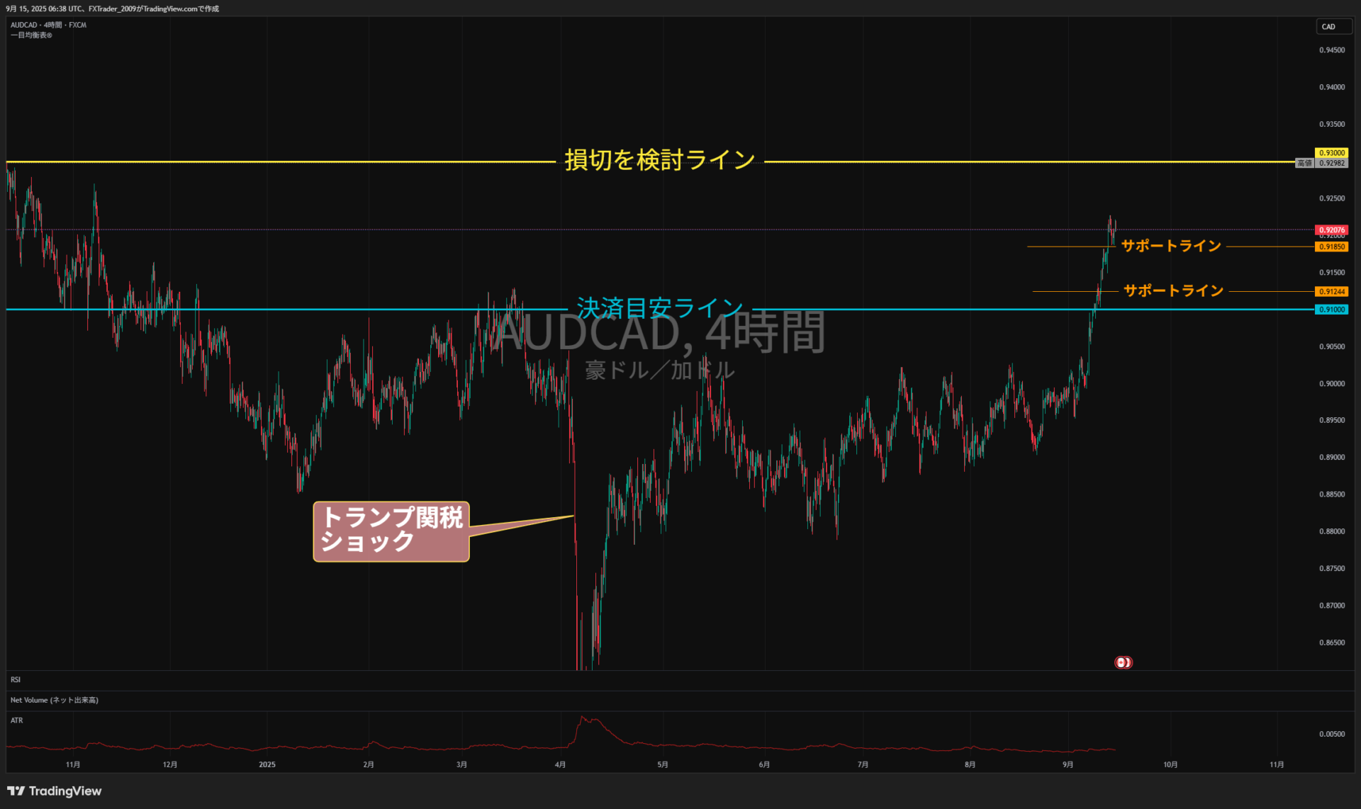 2025年9月2日より、『AUDCAD(オージーカナダ)』は押し目を作らない上昇(一方通行270pipsほど)について図解していきます。