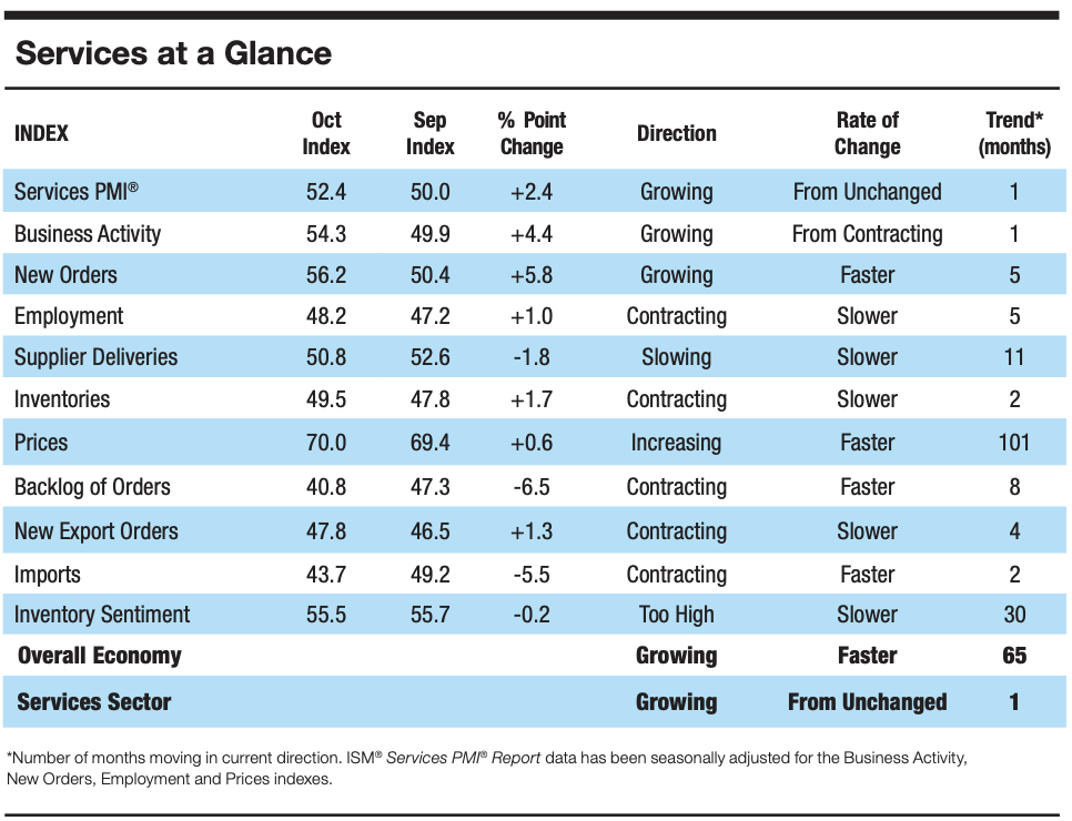 一方で雇用指数(Employment Index)は48.2%と依然50を下回っており、サービス部門でも採用抑制が残ることが読み取れます。