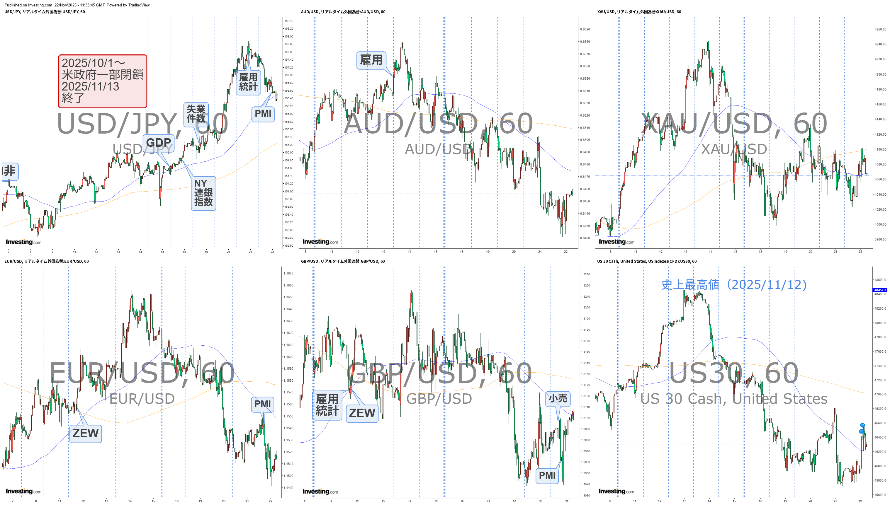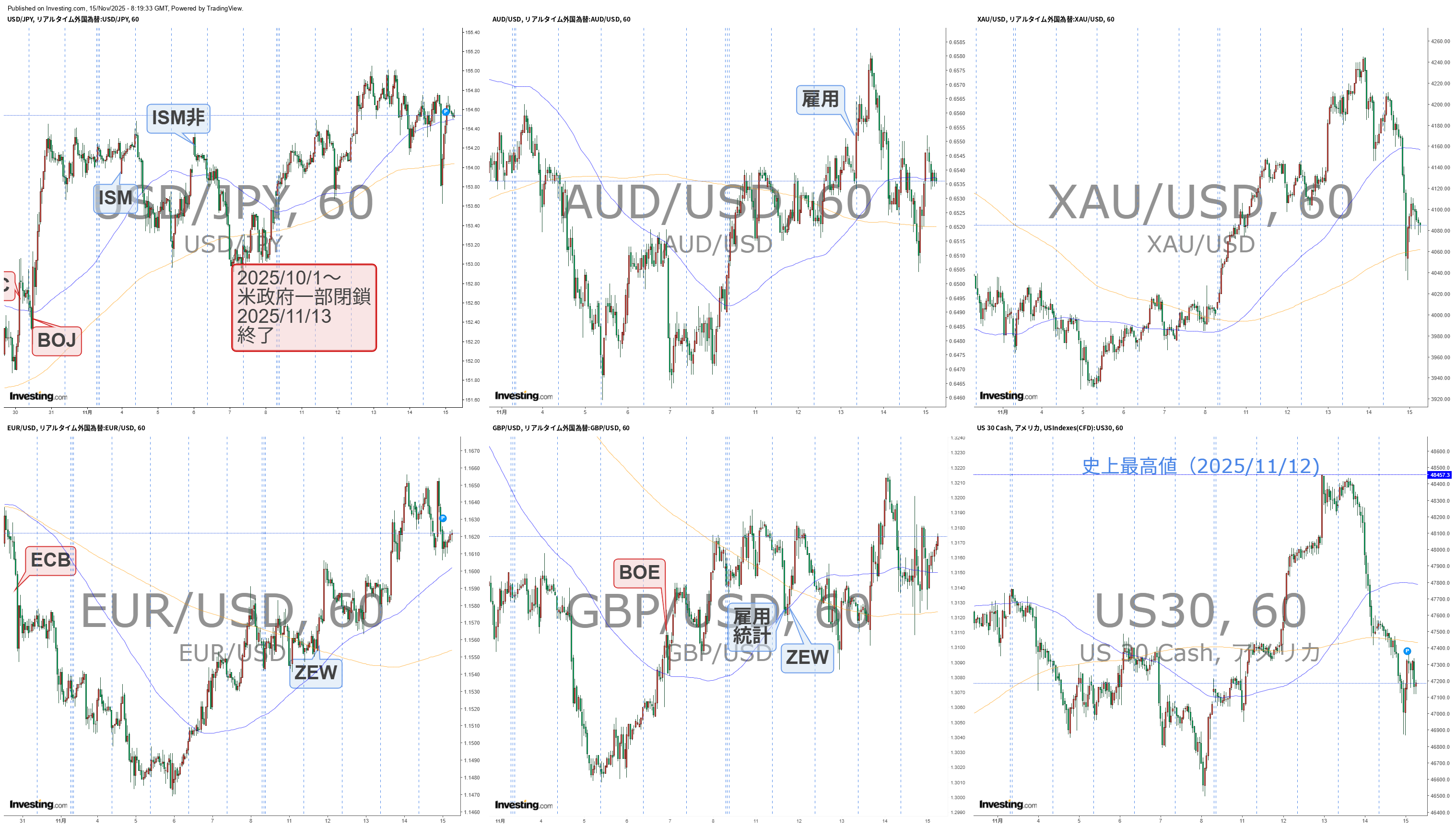 特に「雇用は完全雇用に近い状態にある」「インフレは完全には下がっていない」「12月FOMCでの利下げは確実ではない」というメッセージ