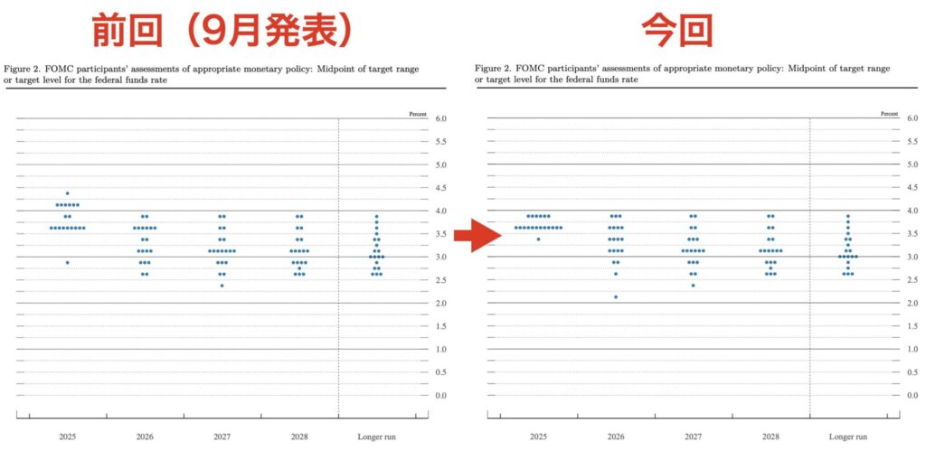ドットチャートの中央値に変化はなく、こちらはハト派ともタカ派とも言えない内容ですね。